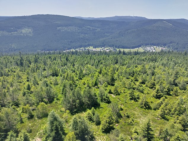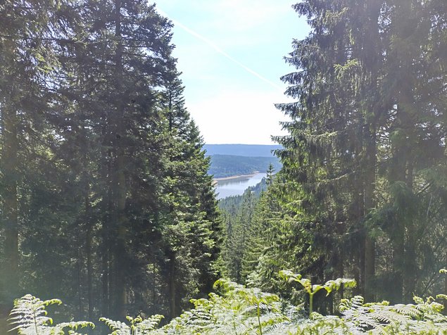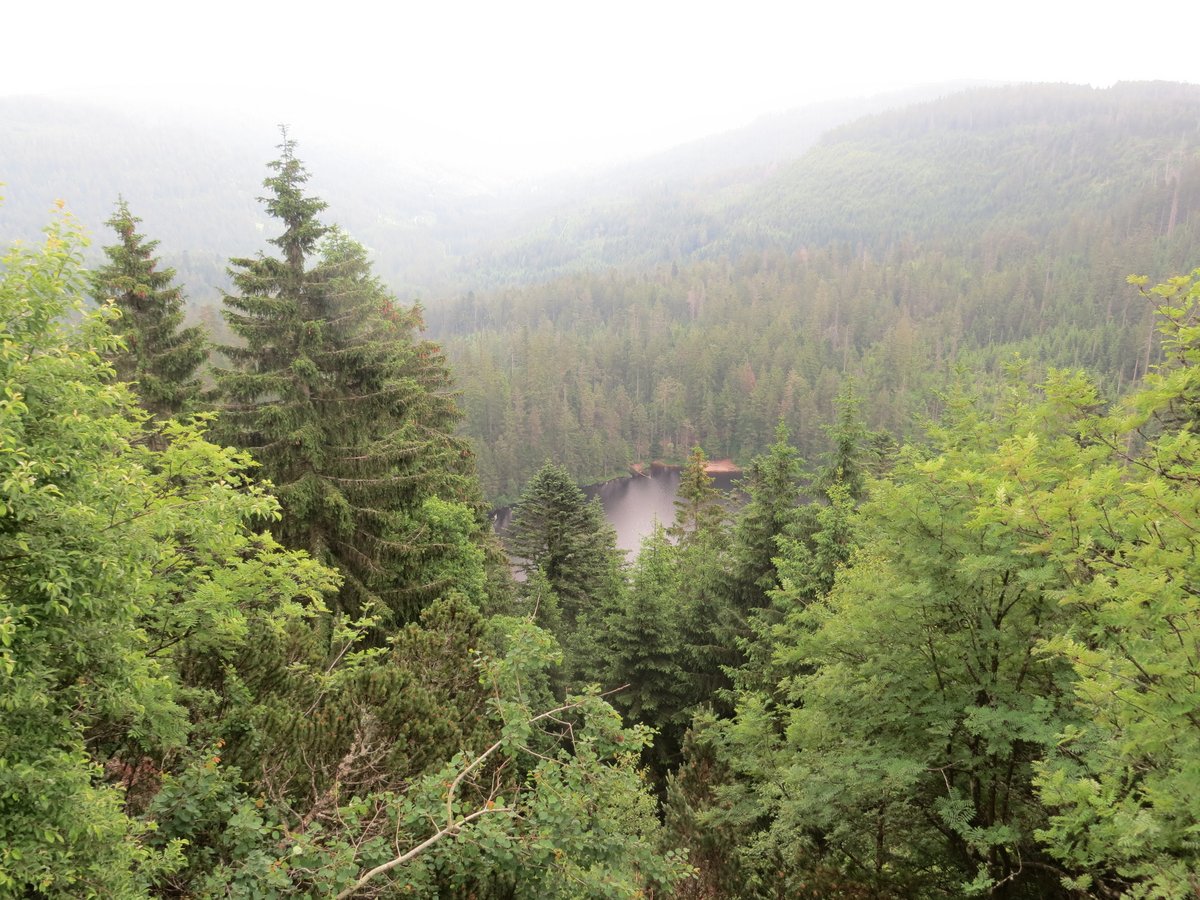 Im Anschluss starteten wir unsere Wanderung von Herrenwies in Richtung Herrenwieser See. Dort angekommen, konnten wir einen der schönsten Karseen im Schwarzwald bestaunen. In der Eiszeit von Gletschern geformt, vermittelt er heute einen ursprünglichen Zauber, der die Besucher in seinen Bann zieht. Wir folgten nun dem Westweg, indem wir die steile Karwand bestiegen. Während des Wegs passierten wir den Zwei-Seen-Blick mit Aussicht auf den Herrenwieser See und die Schwarzenbach Talsperre. Als wir das Hochplateau erreicht hatten, konnten wir schon in der Ferne den dreißig Meter hohen Friedrichsturm auf der Badener Höhe sehen. Das Besteigen des Turmes wurde mit einer herrlichen Aussicht über den nördlichen Schwarzwald, über Herrenwies, Mehliskopf und Hornisgrinde, dem höchsten Berg im Nordschwarzwald belohnt. Hier ging der Ranger auf die verschiedenen Waldformen im Nationalpark und die verschiedenen Zonen im Nationalpark ein. In der Kernzone wird nicht in die Natur eingegriffen und hierdurch die Natur sich selbst überlassen. In der Entwicklungszone wird nur im Notfall eingegriffen, was zur Folge hat, dass die Entwicklungszone in 30 bis 40 Jahren ebenfalls in die Kernzone umgewandelt werden soll. Die Managementzone übt eine sogenannte Schutzzone für die beiden anderen Zone aus. Diese Zone wird beispielsweise bei einem Käferbefall aufgearbeitet.