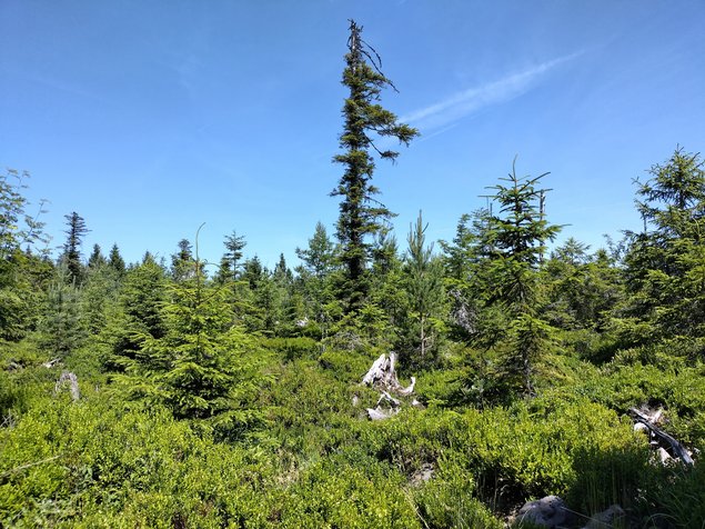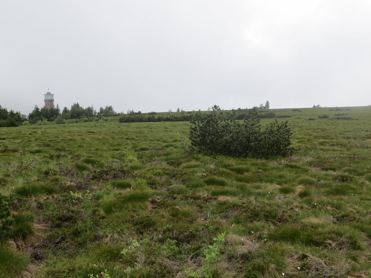 Anschließend traten wir den Anstieg zur Hornisgrinde an. Die Hornisgrinde ist von besonderer erdgeschichtlicher sowie landschaftsgeschichtlicher Bedeutung. Die ausgedehnten Feuchtheiden der Hochfläche, die sogenannten Grinden, gehen auf die Nutzung des Menschen zurück. Seit dem Mittelalter wurden die Waldflächen immer wieder brandgerodet und als Viehweide genutzt. Das große Hochmoor auf dem Südgipfel war davon nicht betroffen, da es von Natur aus waldfrei ist. Seine bis zu 5 Meter mächtigen Torfschichten werden auf ein Alter von 6000 Jahren geschätzt.