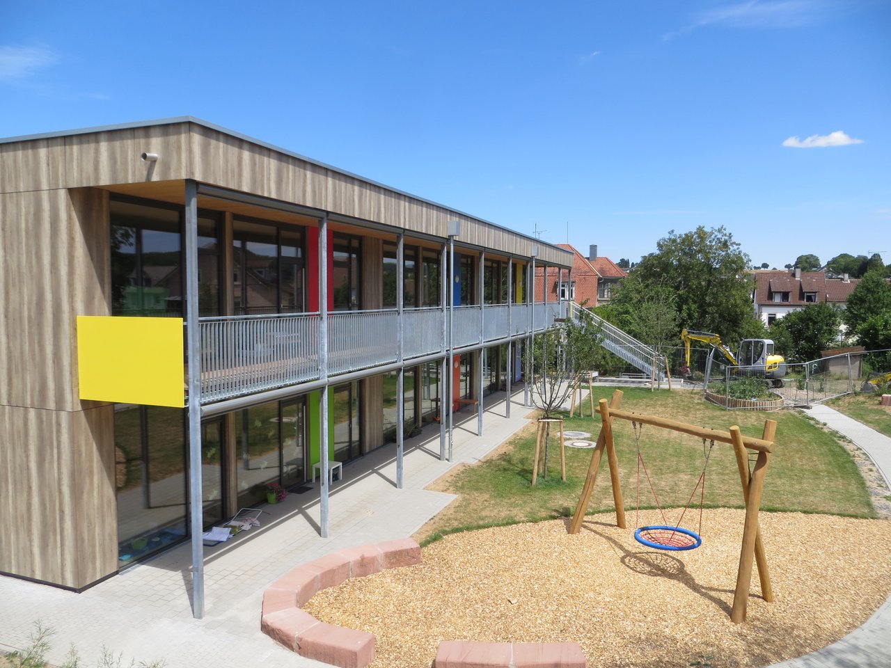 Nächster Haltepunkt war das Kinderhaus Regenbogen in Jöhlingen. Bei der letztjährigen Grünen Tour de Walzbachtal standen hier noch Bauzäune. Dieses Jahr konnten sich die Teilnehmer von einem vollends gelungenen Kinderhaus überzeugen.