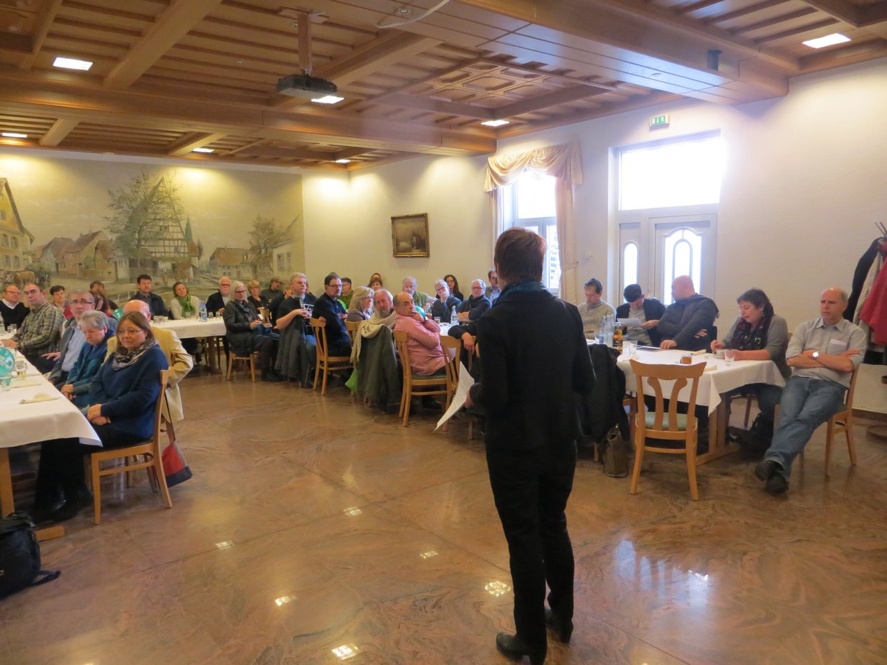 Auch die Glyphosatdebatte in der EU sprach sie an, und dass die Verschiebung der Abstimmung als Etappensieg zu werten sei: "Es ist ein großer Erfolg, dass die EU-Kommission mit ihrem schwachen Vorschlag gescheitert ist. Länder wie Schweden, Niederlande, Frankreich und Italien hatten angekündigt, gegen eine Zulassung bis zum Sankt-Nimmerleinstag zu stimmen. Dies sollten sich die anderen EU-Länder zum Vorbild nehmen. Denn die Gesetzgebung ist eindeutig: Chemikalien, die im begründeten Verdacht stehen, krebserregend und hormonell wirksam zu sein, müssen verboten werden", bevor es in eine rege Debatte mit den Zuhörerinnen und Zuhörer ging, die erst nach 22 Uhr beendet war. Fazit eines Gastes über Maria Heubuch: "Die weiß, wo von se schwätzt".