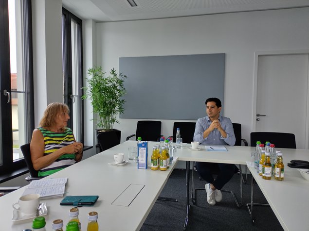 Im Anschluss an die Betriebsbesichtigung tauschte Andrea Schwarz sich mit Bürgermeister Özcan und den Grünen Vertreter*innen im Café Panama noch über die Themen aus, die vor Ort derzeit die politische Landschaft bestimmen. Umgehungsstraße ja oder nein? Mehr und zuverlässigerer ÖPNV, mehr Güter-auf-die Schiene, mehr Radwege? Es gibt noch viel zu tun. Die Zukunft kann kommen.