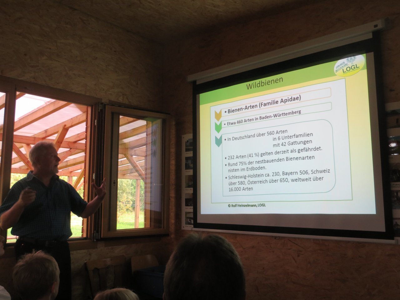 In Deutschland gibt es über 560 Wildbienenarten, in Baden-Württemberg rund Wildbienenarten, davon gelten derzeit etwa 52% als gefährdet. Grund genug sich mit einem Themenabend den Wildbienen zu widmen. Die Grünen Walzbachtal und der Obst- und Gartenbauverein Wössingen luden zu einem Vortrag auf dem OGV-Vereinsgrundstück „Dieterslöchle“ ein. Als Referenten konnte der Landesgeschäftsführer vom Landesverband für Obstbau, Garten und Landschaft Baden-Württemberg e.V. (LOGL), Rolf Heinzelmann, gewonnen werden. Die Veranstaltung war mit ca. 35 Gästen, unter denen sich auch die Landtagsabgeordnete Andrea Schwarz (Bündnis 90 / Die Grünen) befand, gut besucht.